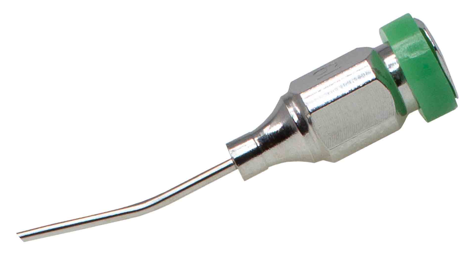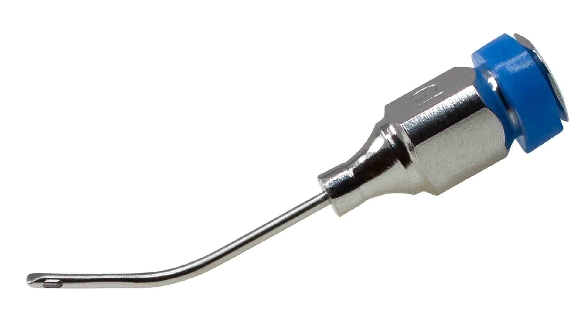 These irrigation cannulas come with a 15° bend and 3 ports at the distal tip to allow for side and front irrigation.