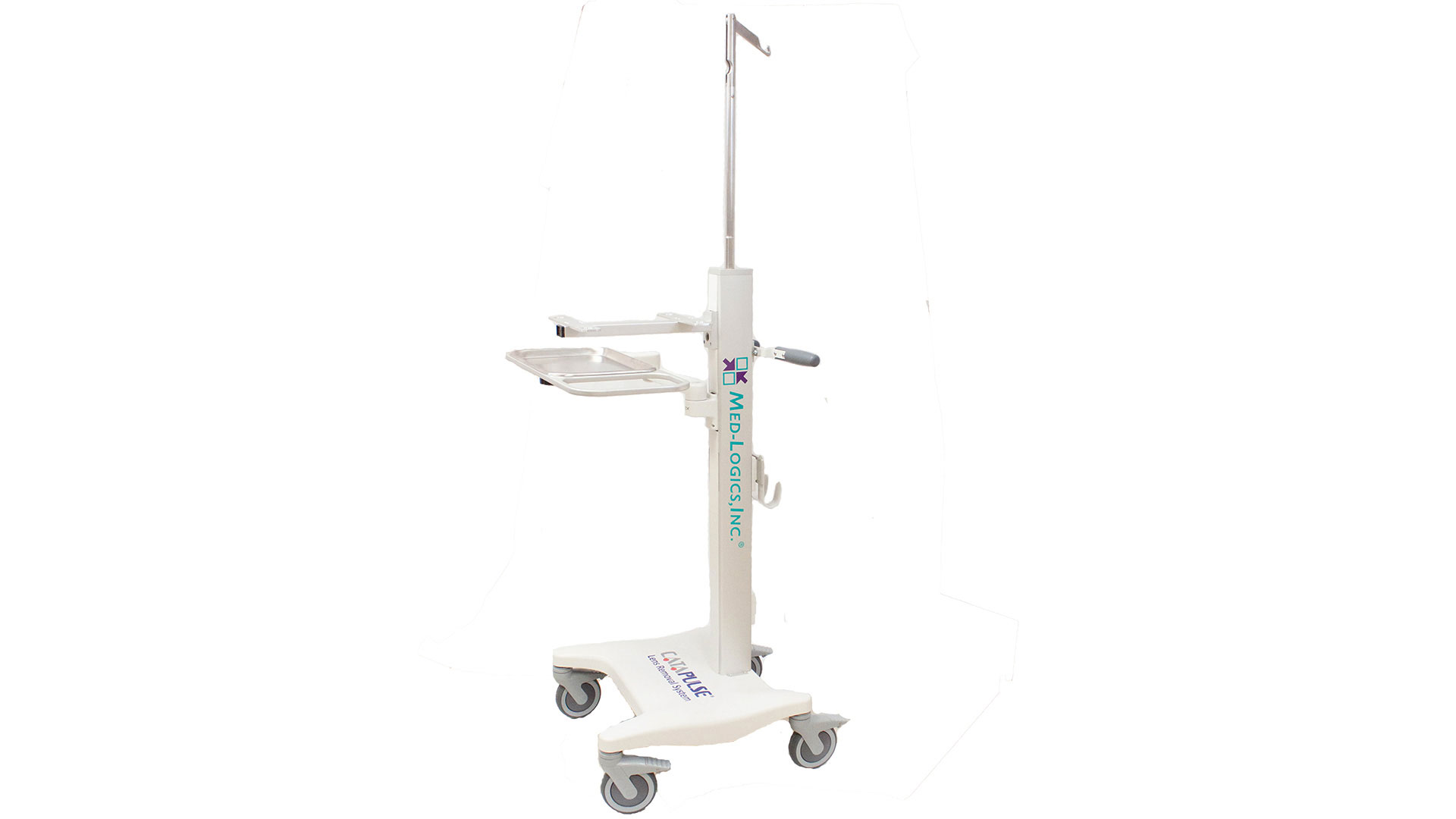 The CataPulse® Cart safely holds the CataPulse® and Footswitch. The IV Pole height is controlled by the console and can be adjusted when in use from the Footswitch or the touch screen.